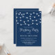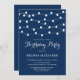 Cette invitation à la fête d'anniversaire élégante et fantaisiste présente des lumières de fée en suspension blanche sur un arrière - plan vert sage. Personnalisez en ajoutant vos détails. Cette invitation d'anniversaire bleu marine est parfaite pour des fêtes d'anniversaire en plein air.