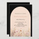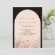Une élégante invitation fleur sauvage. Arrière - plan noir et arche couleur pêche. Décoré de fleurs sauvages couleur eau dans le beige, rose.