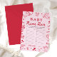 Apportez l'excitation et le charme de la Saint-Valentin à votre baby shower avec ce jeu adorable de "Baby Name Race" ! Conçu dans une palette romantique rose de la Saint-Valentin, cette carte dessinée à la main présente de doux cœurs, des nœuds fantaisistes, des gribouillis ludiques et des détails coquets qui correspondent parfaitement au thème de baby shower "A Little Sweetheart".