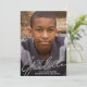 Cette carte de graduation simple et moderne présente une superposition de script en faux feuille d'argent et une photo complète. Sur le devant, "Graduate" est affiché en bas en écriture manuscrite sur une grande photo verticale. Ajoutez le nom et la photo de votre diplômé, l'année de remise des diplômes et l'école au premier plan. Au verso, vous pouvez ajouter les détails de la fête de remise de diplômes.