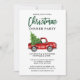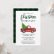 Brosse Script Watercolor Vintage Camion rouge avec arbre de Noël - Dîner de Noël Invitation - Script vert, Green Plaid Back