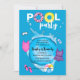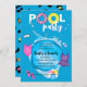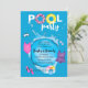 Célébrez un anniversaire pour les jumeaux avec un éclat ! Cette invitation comprend des articles de billard (lunettes, maillot de bain, tongs, ballon, maillots de bain et chars) qui entourent une goutte d'eau. À l'intérieur de la goutte d'eau sont les détails de l'invitation.