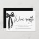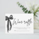 🍷 🎀 Ajoutez une touche de style à votre douche nuptiale grâce à ce billet de jeu moderne élégant à vin noir Bow Raffle ! Doté d'un design élégant et noir, ce billet élégant est parfait pour un cadeau amusant sur le thème du vin. Les clients remplissent leur nom et entrent pour une chance de gagner une bouteille de vin ou un prix spécial ! 🖤 ✨ Une façon simple et élégante d'ajouter de l'excitation à votre célébration tout en gardant le thème chic sans effort.