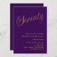 Une invitation design et moderne pour une fête de 70e anniversaire. Un arrière - plan de couleur violette et le mot Soixante-dix écrit avec d'élégantes grandes lettres de script en faux or. Personnalisez et ajoutez un nom et des détails du parti.
