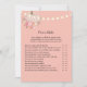 Profitez de ce jeu élégant de baby shower pour fille avec un thème floral automnal, « Over or Under ». Guirlande de lumières sur le devant avec une petite citrouille et des fleurs sous la citrouille. Fleurs roses, coraux et jaunes sur fond rose blush. Des modèles sont fournis au dos.