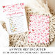 Réponses : 1. Bonne nuit Lune 2. Oeufs verts et jambon 3. Le chat dans le Casquette 4. Le Web de Charlotte 5. Si vous donnez à une souris un Cookie 6.Le Petit Moteur qui Pourrait 7.James et le Géant Peach 8.Goldilocks et les 3 Ours 9.Rainbow Fish 10. Peter Pan 11. La Petite Sirène 12.Où sont les choses sauvages 13. Le Jardin Secret 14.Le Chateau Très Affamé 15.Le Livre de la Jungle ............................................................................................................................................................................ Faites de votre Baby shower Saint-Valentin un plaisir supplémentaire avec cette Aquarelle Coeurs roses "Valentine Sweetheart" Livre pour enfants Emoji Pictionary Game! 💕 📚 🎀 Doté d'un adorable design de coeur rose, ce jeu divertissant invite les clients à deviner les titres populaires des livres pour enfants en utilisant seulement des émoticônes. Une façon créative et engageante d’allumer le rire, la nostalgie et la compétition amicale tout en célébrant l’arrivée de votre petit ami. Parfait pour une petite fille Valentine douches à thème ! 🌸 ✨