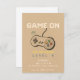 Game On! Augmentez l'anniversaire de votre garçon avec cette carte d'invitation rétro sur le thème du jeu, avec un contrôleur de jeu vidéo de l'ancienne école au centre, dressée contre un arrière - plan cool brun. Conçu avec des polices d'inspiration pixel et un charme nostalgique, cet invitation est parfait pour les jeunes joueurs et les amateurs d'arcade des années 80 ou 90. Idéal pour les garçons de tous âges, cette invitation est à la fois amusante et élégante — un retour à l'âge d'or du jeu. Entièrement personnalisable avec le nom, l’âge, l’heure de la fête et l’emplacement de votre enfant. Idéal pour l'impression ou le partage numérique !