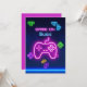 Invitation Jeu vidéo néon gamer vert, rose, bleu
