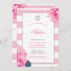 Roses roses avec taches d'argent Hébreu Cérémonie de désignation invitation. Le design est rose avec un texte couleur argent qui est facilement changé à vos informations. Choisissez parmi une gamme de types de papier.