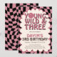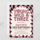 Invitation d'anniversaire Young Wild and Three | Invitation de fête d'anniversaire rétro mignonne pour les 3 ans des filles