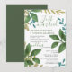 Annonce de Jeunes Mariés - Invitation à la Réception : Feuilles de thé à l'aquarelle peintes à la main avec verdure de jardin botanique. Typographie moderne tendance avec champs de modèle de texte modifiables. Le choix de la police, la mise en page et les couleurs peuvent être modifiés en fonction du style et du goût.