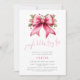 Jingle Bells Baby Toes Pink Bow Baby shower de Noël. Style minimaliste avec un ensemble de script non modifiable pour Jingle Bells Tiny Toes et personnalisez facilement le reste du texte à vos détails. Un arc rose coquette avec sainte et baies ajoute une touche festive spéciale.