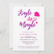 Jingle et Mingle, une invitation à la fête de Noël moderne avec un script de typographie à la mode, un petit coeur, et un chapeau de Père Noël dans le violet et rose chaud tendance.