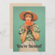 Une femme joyeuse en chapeau de soleil et chemise fleurie profite d'une tranche de pastèque contre un arrière - plan turquoise vibrant, capturant un moment parfait de bonheur estival.