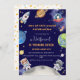 Design décoré sur le thème de l'espace extra-atmosphérique avec une aquarelle avec des fusées, des planètes, des étoiles et de mignons animaux astronautes boisés un raton laveur et un ours ce design cosmique ajoute une touche ludique et imaginative à votre célébration.