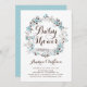 Invitation Joli Baby shower de couronne florale bleu et gris