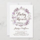 Belle invitation baby shower de couronnes florales violettes. Il dispose d'une couronne florale de fleurs de printemps violettes et grises avec de la calligraphie moderne fantaisie. Cette invitation au baby shower à couronne de fleurs sera parfaite pour les baby showers et baby showers de jardin neutres pour les femmes. Personnalisez en ajoutant les détails de votre événement.