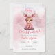 Le design de Whimsical pour le Baby shower de fille d'hiver présente un petit cerf de bébé rose dans la forêt enneigée de conte de fées. N'hésitez pas à me contacter pour les articles correspondants ou la personnalisation.
