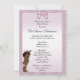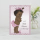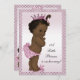 Élégante invitation à la douche de bébé rose vintage Africain Américain avec une belle illustration vintage d'une jolie et adorable peau brune ethnique / petite fille à la peau foncée avec couronne élégante rose princesse, babouches lapin doux, couche rose avec des rouffles et un arc rose dans ses cheveux sur un joli dégradé rose arrière - plan avec une bordure pois noire classe. Chic, tendance, glamour, girly, amusant, tendance abordable personnalisé / personnalisé invitations de Baby shower fille pour votre thème Princesse / Princesse thème douches. Une petite princesse est en route ! Décoré de part et d'autre. Le dos a le même design et aussi un joli arc rose et une image diamant. Impression recto verso. Si vous avez besoin d'aide pour customiser votre produit, veuillez me contacter par l'intermédiaire de mon magasin et je serai heureux de vous aider. VEUILLEZ NOTER : - Toutes les invitations sur Zazzle ont des images imprimées plates.