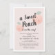 Cette mignonne "a Sweet Peach is on way" à travers l'invitation de baby shower dispose d'une pêche avec visage sur un arrière - plan rose pêche léger encadré par une bordure blanche. L'envers est orné d'un arrière - plan rose pêche avec des motifs à points de polka. Personnalisez-vous pour répondre à vos besoins. Vous pouvez trouver d'autres produits correspondants dans mon magasin.