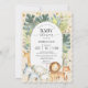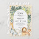 Baby shower moderne et mignon, neutre pour les garçons et les filles. Il comprend une forêt de jungle aquarelle et des animaux de bébé safari avec arrière - plan beige. Les couleurs de cet invitation baby shower peuvent être utilisées pour accueillir un bébé ou une petite fille pour toutes les saisons.
