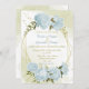 Belles fleurs bleues avec feuilles verts sur un cadre géométrique faire-part de mariage. Les détails de la parties scintillant d'or sont simulés. Il convient aussi bien aux invitations mariages qu'aux fiançailles. pour plus de personnalisation (changer la police ou sa couleur ou changer la disposition ) cliquez sur personnaliser défilez vers le bas puis cliquez sur (Cliquez pour customiser plus loin). POUR PLUS DE PRODUITS CORRESPONDANTS cliquez sur la collection ci-dessus ou contactez-moi.