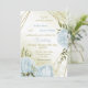 Belles fleurs bleues avec feuilles verts sur un cadre géométrique faire-part de mariage. Les détails de la parties scintillant d'or sont simulés. Il convient aussi bien aux invitations mariages qu'aux fiançailles. pour plus de personnalisation (changer la police ou sa couleur ou changer la disposition ) cliquez sur personnaliser défilez vers le bas puis cliquez sur (Cliquez pour customiser plus loin). POUR PLUS DE PRODUITS CORRESPONDANTS cliquez sur la collection ci-dessus ou contactez-moi.