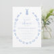 Explorez notre délicieuse invitation à la douche pour bébé avec un charmant lapin bleu de Pâques entouré d'une couronne de fleurs de printemps et de carottes. Ce design adorable est parfait pour accueillir votre petit avec joie et fantaisie.