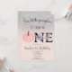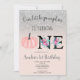 Notre petite citrouille a un an ! Célébration du 1er anniversaire . Une jolie et moderne citrouille aquarelle rose blush pastel dessinée et peinte à la main et ombre chic argenté scintillant avec des lettres florales noires et une typographie cool sur un fond entièrement personnalisable.