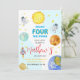 Joli espace extra-atmosphérique 4e Invitation d'anniversaire enfant. Joli design coloré avec des planètes d'aquarelle mignonnes, astronaute, vaisseau spatial. pour votre invitation 4ème enfant.