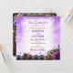 Un faire-part de mariage à vapeur à thème gothique fleuri unique. Couleurs violettes, or, cuivre et noir avec engrenages métalliques, fleurs, roses, clés et autres éléments amusants steampunk.
