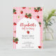 Cette invitation de 1er anniversaire sur le thème des fraises rouges "Berry First" avec un texte personnalisable est parfaite pour une première fête d'anniversaire. Elle présente des fleurs et des motifs de fraise sur un fond à carreaux rouges et un texte que vous pouvez personnaliser avec vos propres détails. Le modèle d'invitation est personnalisable dans l'éditeur de liste et est également disponible en téléchargement numérique imprimable après personnalisation.