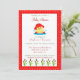 Joli baby shower fille douche Printemps et été sur le thème de l'invitation, ce design est mis sur un pois rouge arrière - plan. L'invitation comprend un mignon canard assis dans l'eau avec un mignon casquette et de l'herbe au fond. Customisez le vôtre aujourd'hui ! Arrière - plan et clipart : AMBillustrations http://www.etsy.com/shop/AMBillustrations/