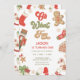 Joli Red Green Boys Oh What Fun Birthday Invitation Jolie invitation d'anniversaire d'hiver thème Noël pour un garçon avec plusieurs articles thématiques de Noël et un texte de style rétro. Ce oh quelle amusante invitation d'anniversaire pour les garçons d'hiver peut être utilisé pour n'importe quel âge et comprend des illustrations comme les bas de Noël, mitaines, homme en pain d'épice et plus.