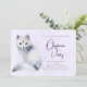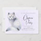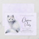 Invitation de Noël avec une image aquarelle d'un renard blanc avec des motifs floraux bleus fantaisistes sur tout son pelage.
