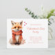 Une invitation à une fête de la Saint-Valentin avec une illustration d'un renardeau orange-rouge. Un léger sourire sur son visage. Porte une belle écharpe rouge pour se tenir chaud.