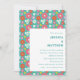 Invitation Joli Retro 60s Fleurs bleu turquoise Mariage