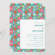Joli Super Retro 60s Fleurs Turquoise Bleu et Rose chaud Faire-part de mariage