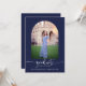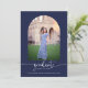 Arc photo moderne Elegant Navy Blue and White Script Graduation Arch Invitation avec élégant script manuscrit, avec une photo de taille sur le devant et une photo carré sur le dos. Tous les textes et les couleurs sont entièrement personnalisables - parfait pour vos annonces de graduation élégantes et simples. Veuillez nous contacter à cedarandstring@gmail.com si vous avez besoin d'aide pour la conception ou les produits correspondants.