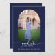 Invitation Joli Script Graduation Arc Photo Marine Bleu