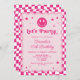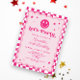 Invitation d'anniversaire de fille rose vif à carreaux avec un joli sourire heureux.
