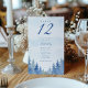Guidez vos invités à travers une célébration hivernale magique avec cet élégant tableau de sièges de mariage, magnifiquement illustré avec des rangées de jolies pins doucement poussiérés dans la neige. Le design évoque une pinède enchanteresse, mêlant charme hivernal rustique et romantisme à feuillage persistant avec des détails gracieux et froids de la forêt. Des bleus subtils et des verts forestiers peignent un paysage vinicole serein le long de la frontière, créant une atmosphère boisée accueillante et capricieuse. Au centre, la typographie serif classique facile à lire permet d'obtenir des noms d'invités sous un numéro de table audacieux, assurant une organisation transparente tout en maintenant une sophistication raffinée. Idéal pour les mariages des merveilles hivernales et les réceptions douillettes dans les bois, ce tableau de bord combine la beauté saisonnière de la nature et l’élégance intemporelle, ajoutant un morceau de romantisme forestier enneigé à vos festivités, et célébrant votre histoire d’amour au milieu de la splendeur enchanteresse de l’hiver.