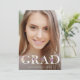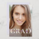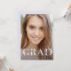 Cette belle invitation branchée à la remise des diplômes comporte une photo du diplômé sur le devant, avec un texte blanc moderne orné de jolies fleurs violettes aquarelles. Toutes les informations de votre grand parti vont à l'arrière, sur un arrière - plan légèrement violet.
