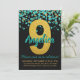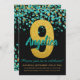 Une Parties scintillant d'or Turquoise et amusante Black Confetti 9e anniversaire Invitation