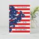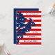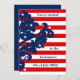 Elégante invitation de fête du jour de l'indépendance qui mesure 5x7". Celles-ci ont des rayures rouges et blanches, et un motif damassé bleu sur le côté gauche avec quelques étoiles blanches ici et là. Ajoutez vos détails aux deux côtés.