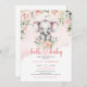 Invitation Jolie aquarelle bébé éléphant bleu floral safari