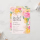 Plutôt chic jardin fleuri nuptiale invitation avec de jolis fleurs sauvages, roses, pivoines en rose, jaune, roux et vert verdoyant feuilles et plus, avec une typographie de script brossé sur un élégant éditable arrière - plan rose pastel doux.