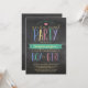 Ce genre mignon révèle la conception d'invitation de la fête par The Spotted Olive™ avec l'image d'un arrière - plan de tableau noir de type coloré et un petit coeur. Copyright ©2014 The Spotted Olive. Tous droits réservés.