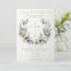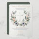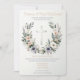 Cette carte d'invitation respire la sérénité et la grâce de la saison de Pâques, avec une couronne fleurie de bon goût et délicate encerclant une croix blanche centrale. La couronne présente des teintes douces de lavande, de bleuets et de fleurs crème, entrecoupées de feuilles et de sprigs verts luxuriants, le tout contre un arrière - plan blanc et propre. Le design est symétrique et équilibré, avec la croix au coeur de la composition, symbolisant la signification spirituelle de l'occasion. L'esthétique générale est celle d'une célébration paisible et d'une élégance raffinée, invitant les participants à une célébration contemplative et joyeuse de Pâques.