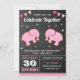 Éblouissez vos invités avec cet invitation de fête jumeaux avec d'adorables petits éléphants aux éléments vibrants contre un arrière - plan de tableau noir. Ajoutez simplement les détails de votre événement sur ce modèle facile à utiliser pour en faire une invitation unique. Retournez la carte pour révéler un élégant motif à rayures roses et blanches au dos de la carte.